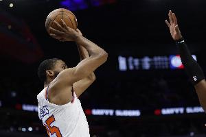 尼克斯球员布里奇斯上半场手感火热,他专注得分,除了得分以外其他数据没有进账。
